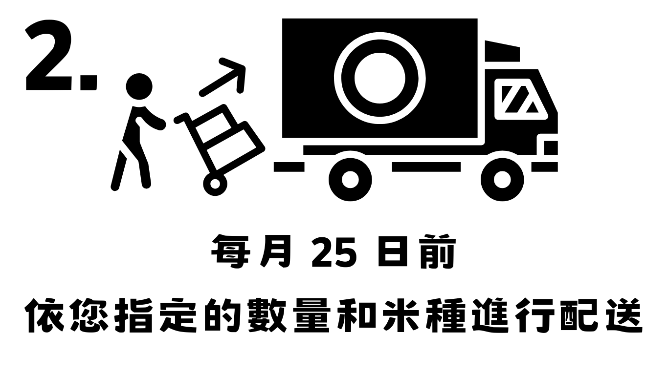 【產品敘述】 每個月底前,為您配送指定之米種到府